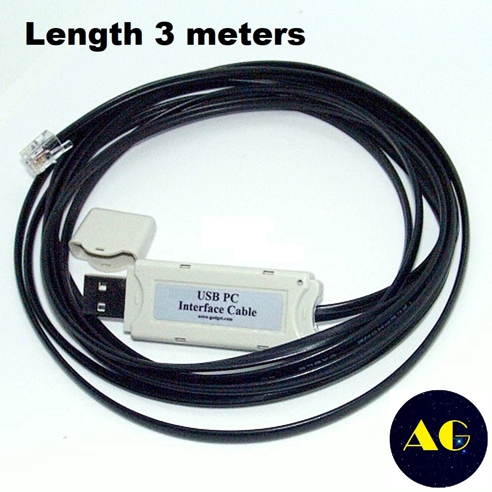 USB-кабель для ПК для Celestron NexStar, призначений для керування комп'ютеризованим телескопом з ноутбука або ПК за допомогою різних програм планетарію. Він підключається до USB-порту комп'ютера та до порту RJ9 ручного контролера.